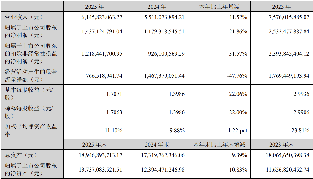 截至2025年12月31日,公司总资产为189.47亿元,较年初增长9.39%;公司归属于上市公司股东的净资产为137.37亿元,较年初增长10.83%。