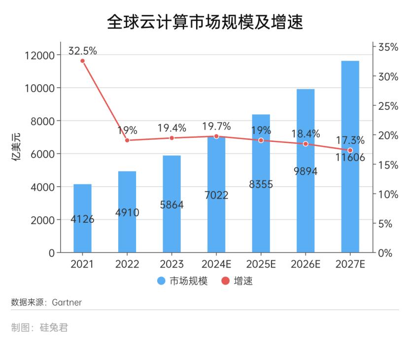 这种未雨绸缪不无道理,如果说在之前,企业上云是一件可选项,那么在生成式AI时代,随着数据量的增多,上云成为了企业的必选项,云服务是大模型的重要基础设施。根据此前Gartner统计,全球云计算市场规模将在2025年达到8355亿美元。