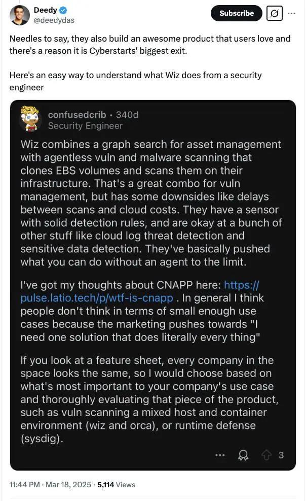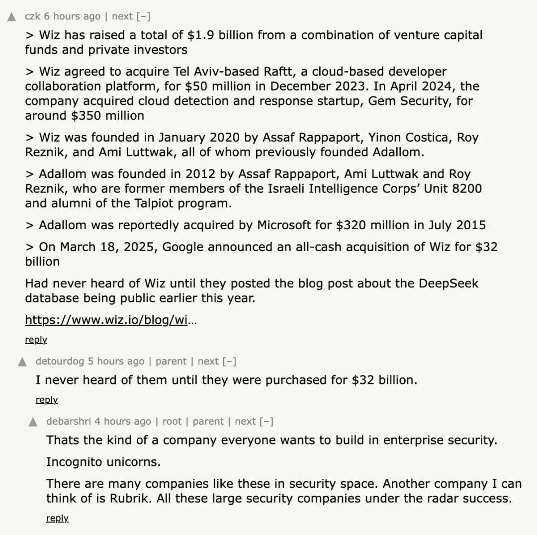 也有 HN 网友表示,他们之所以知道 Wiz,是因为今年早些时候该公司发布的一篇关于 DeepSeek 数据库公开问题的博客文章。