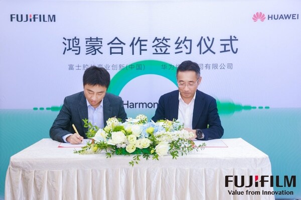 北京2025年10月16日 /美通社/ -- 今天,富士胶片商业创新(中国)有限公司与华为终端有限公司签署了《创新合作备忘录》,双方将发挥各自在移动开放生态、数智办公与开放创新生态的优势,资源互享、促进鸿蒙智慧开放生态的行业拓展与鸿蒙系统的普及,共塑数智创新生态、共推全行业数智化转型与创新发展。富士胶片商业创新(中国)董事长兼总裁中村达也与华为终端BG业务发展部部长张京武代表双方企业签署备忘录。