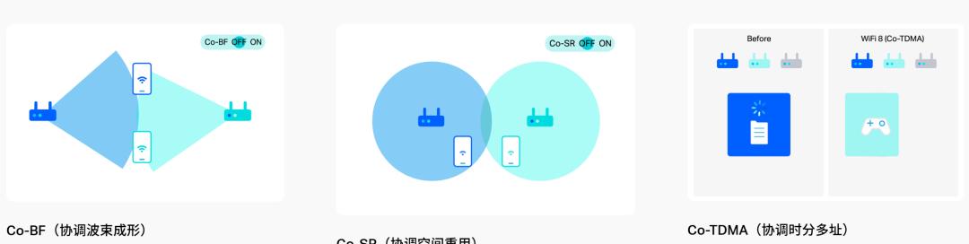 Co-BF(协调波束成形):多个 AP 协同工作,将 WiFi 信号更精准地发送到您的设备。此举旨在减少来自其他 Mesh AP 的干扰,从而提高可靠性,并在覆盖范围边缘和多设备环境中保持更稳定的连接。
