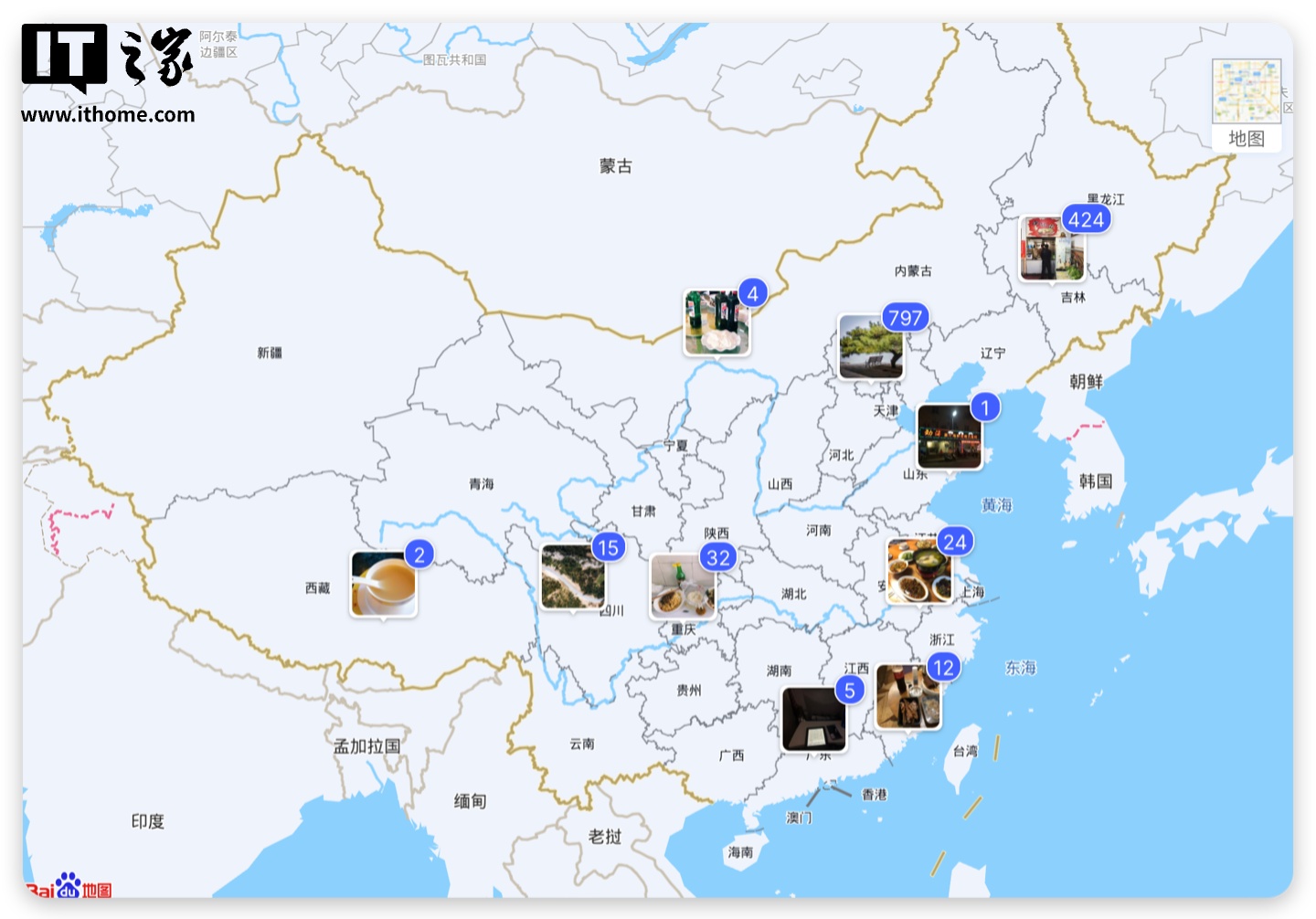 依据图片中的位置信息,还能够提供按照足迹分布的照片相册。