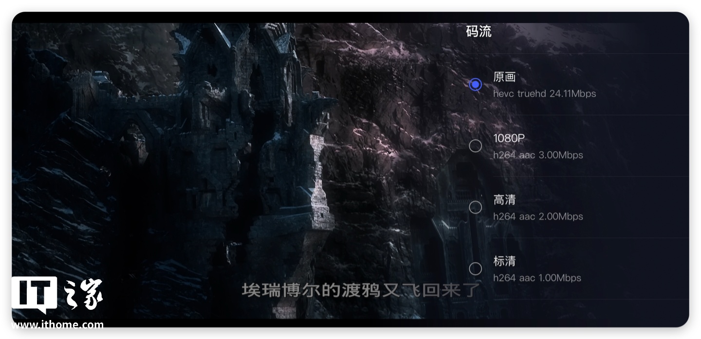 解码能力方面,也能够点亮 P5、P8 格式的杜比视界,其余个性化设置,如调节字幕大小、选择音轨等,也都具备。