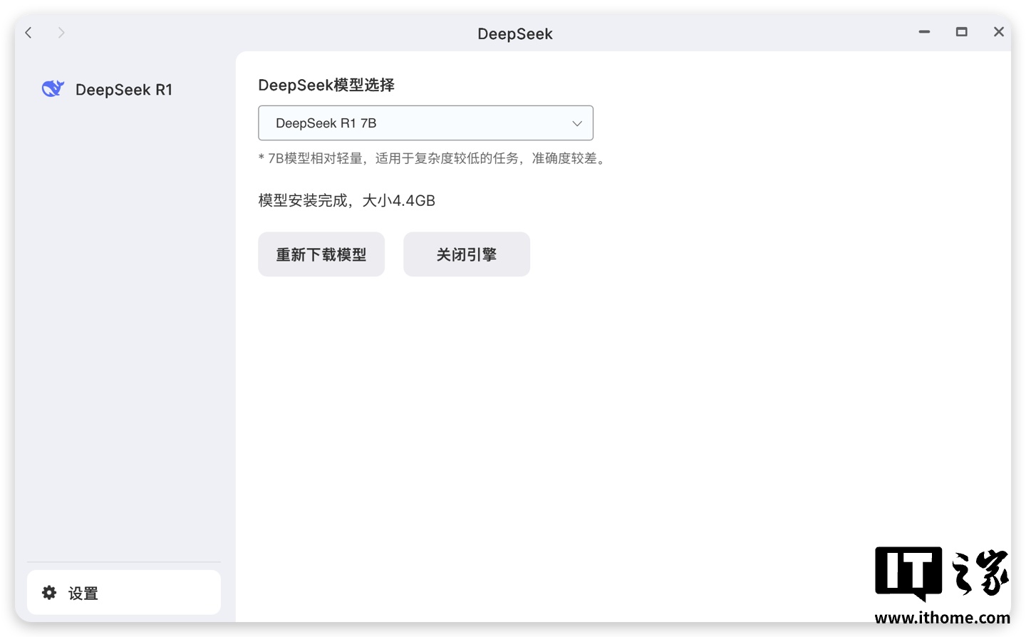 除了可以基于自己数据进行训练的“私人 AI 数据管家”,极空间 Z425 还内置了 DeepSeek,可以在本地运行 DeepSeek R1-7B 模型,首次使用同样需要先下载模型。