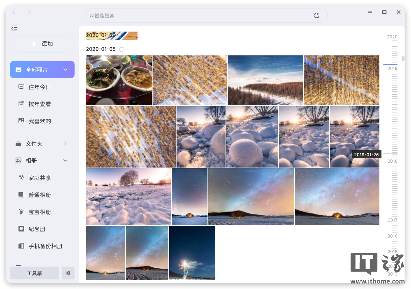 除了影视功能以外,另一个常用功能就是相册了。相册功能同样上手简单,设定好保存文件夹后,就能够自动识别、生成缩略图,以供全平台快速浏览查看。