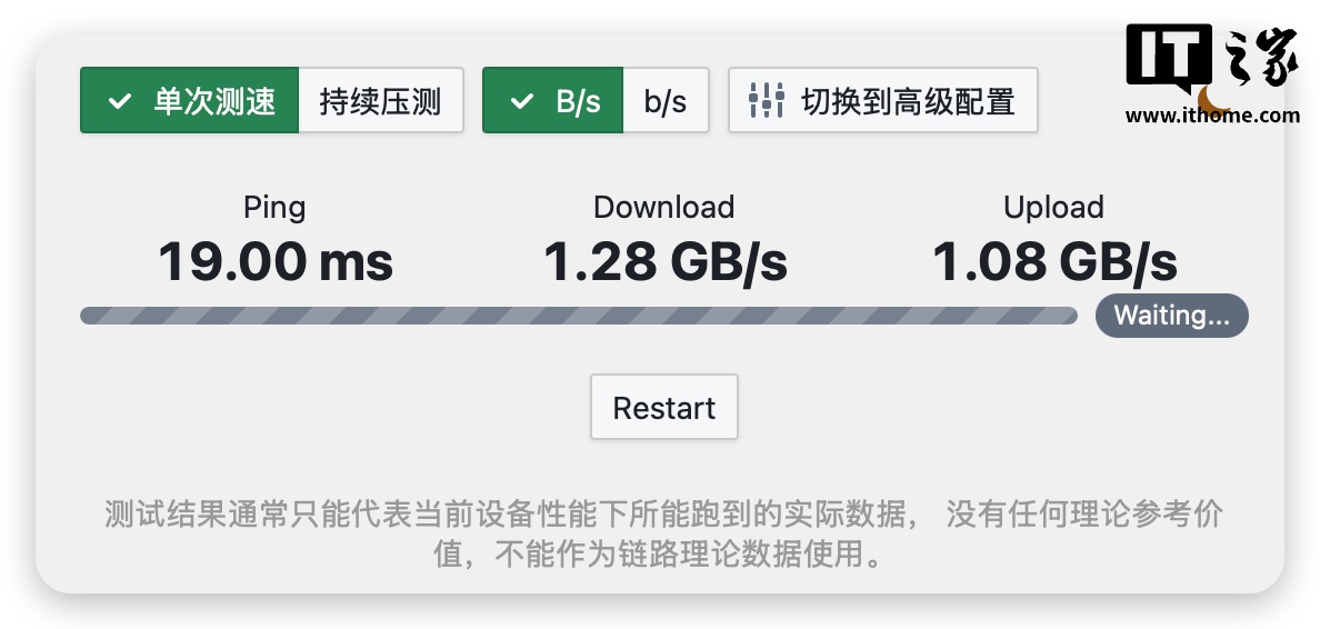 数据传输性能方面,考虑到此次 Z425 上固态硬盘的 M.2 带宽已经远超万兆网口的最大传输速率(1250MB/s),因此我们首先借助万兆交换机、万兆路由器以及 MacBook Pro 外接雷电 3 万兆网卡的全链路万兆内网进行测试,速度稳定突破了万兆。这里的万兆网速测试使用的是 Docker 内搭建的 Homebox,也是一款通用的内网网速测试工具。