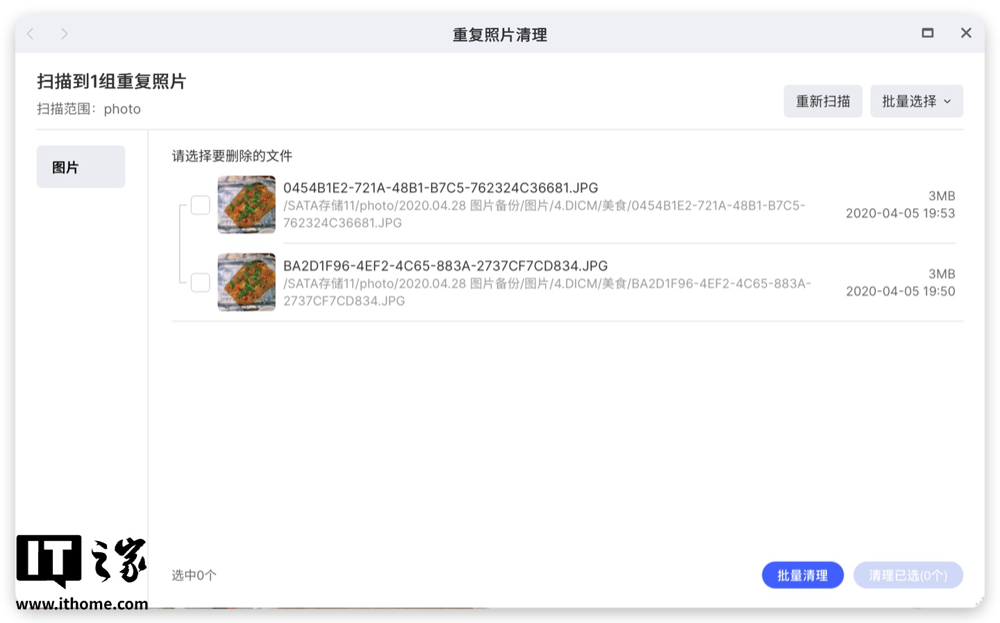 对于大量导入的照片,如果有重复的情况,还可以使用自动查重功能,扫描重复的照片并比对照片信息。