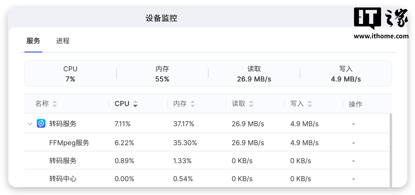 功耗方面,待机功耗约为 20W+,相册在后台进行 AI 数据识别的时候功耗约为 50-60W,不过以上功耗为仅有一块机械硬盘时测得,根据硬盘数量的不同,功耗还会有一定的差别。