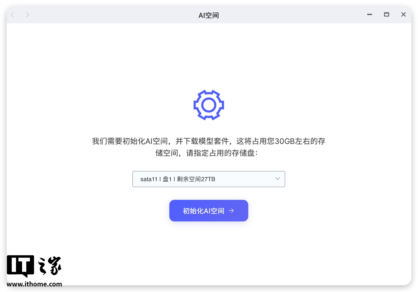 首次打开需要初始化 AI 空间,选择存储位置并下载模型。