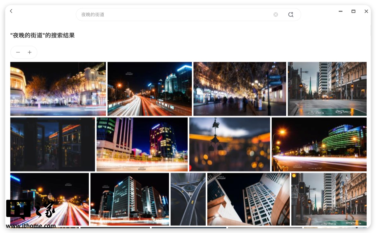 除了自动的识别分类以外,还能够使用自然语言进行搜索,比如搜索“夜晚的街道”,就能够将相册中相关的图片展示出来。