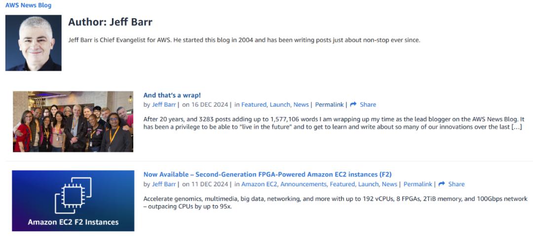 2025 年初,Jeff Barr 宣布他将正式退休,不再担任亚马逊云科技新闻博客的首席博主。这个消息标志着一个时代的落幕,但也更像是一次传承。