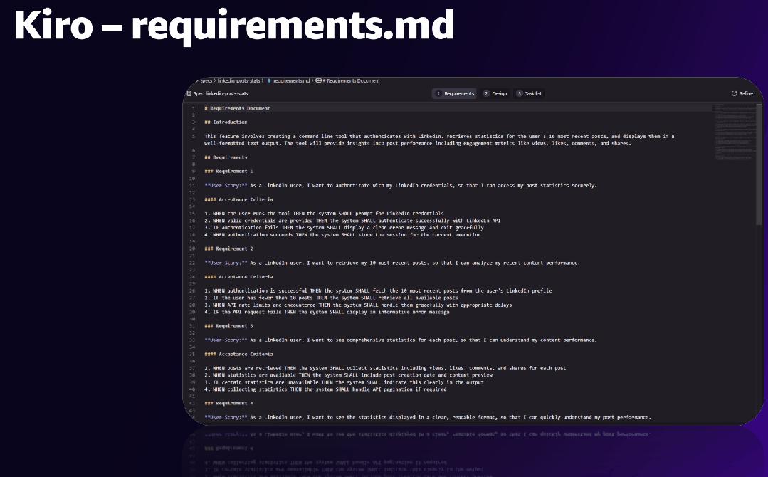 「我们称之为规范驱动的开发(Spec-Driven Development)。」他以此引出了亚马逊云科技的最新工具 Kiro。在 Jeff Barr 看来,这代表了 AI 时代专业软件开发的未来。