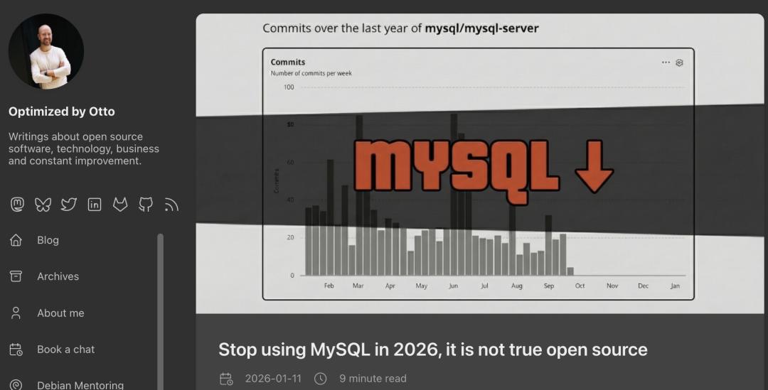 对此,曾任 AWS 关系数据库服务(RDS)软件开发经理、前 MariaDB 基金会 CEO 的 Otto Kekäläinen 直接发布一篇《2026 年停止使用 MySQL,它并非真正的开源软件》的文章作出尖锐的评价:“这并不令人意外——Oracle 并不值得被信任为开源项目的管理者。”