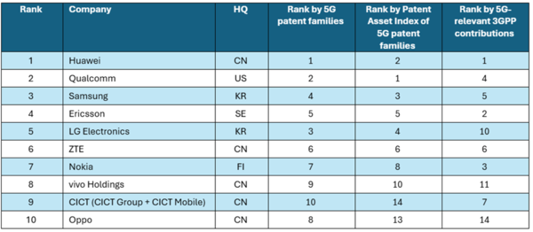 榜单变化:2026年新进入前50名的实体包括研究型组织、以许可和投资为主导的知识产权持有者,以及汽车和物联网连接专业公司,取代了几家以运营商为核心和多元化的工业专利组合。