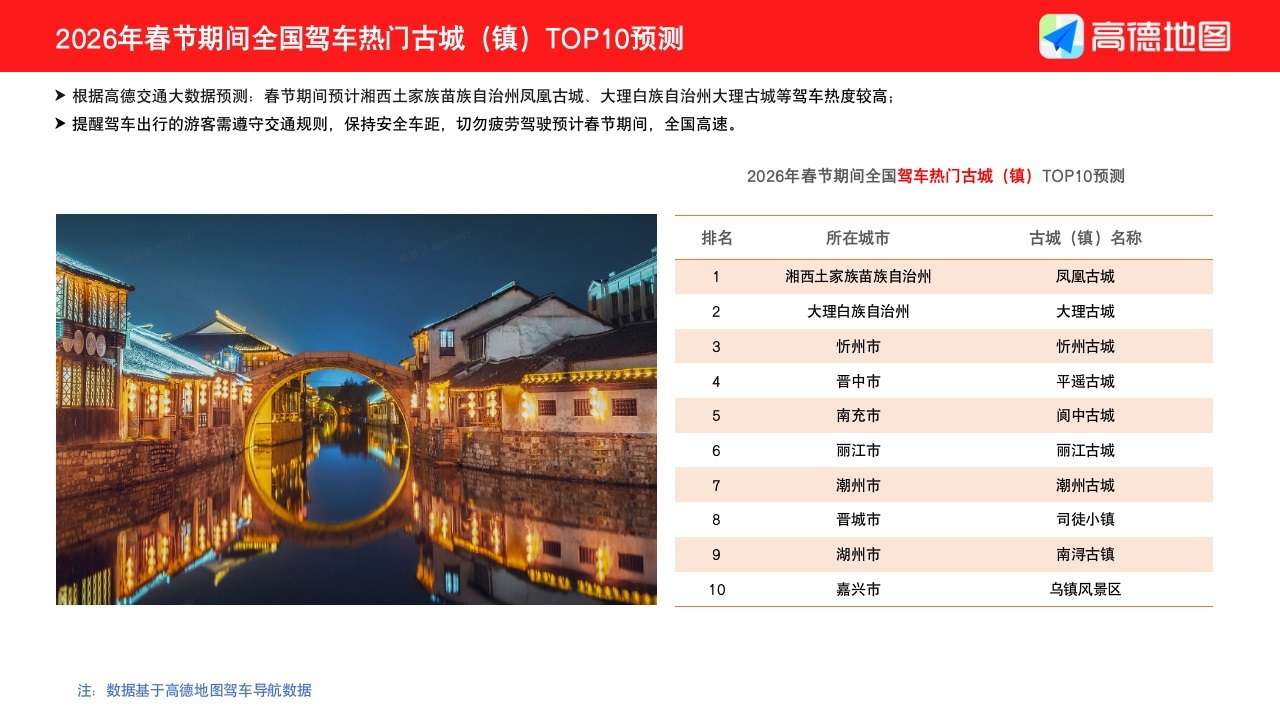 此外,春运出行呈现出明显的个性化趋势,“带宠物”成为顺风车订单备注的高频词,深圳-东莞、北京-廊坊等跨城路线热度居高不下。在旅游过年方面,古城寻年味、海岛避寒和登高祈福成为三大主流选择,广州、重庆、成都等城市依旧稳居热门自驾游目的地前列。