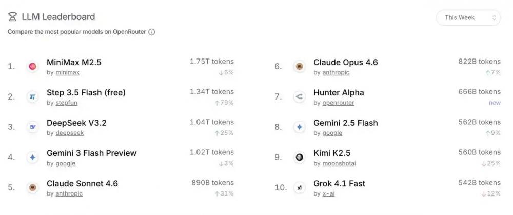 从需求端来看,AI技术的规模化应用正在引发算力需求的爆发式增长。全球最大AI模型API聚合平台OpenRouter的最新周度(3月9日至3月15日)数据显示,中国AI大模型的周调用量已突破4.6万亿Token,连续两周超过美国,且前三名均为中国本土模型。