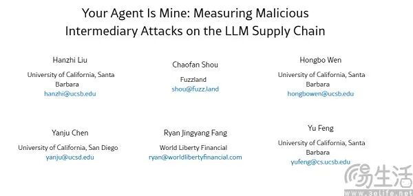 日前,来自加州大学圣芭芭拉分校和圣地亚哥分校的研究团队发现,市面上的第三方AI中转站安全性堪忧。