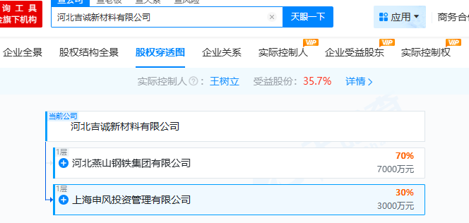 天眼查显示,河北吉诚新材料公司为河北燕钢控股70%的子公司。