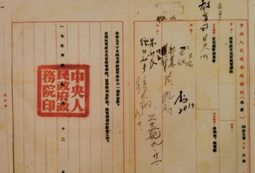 在得到了政务院的批复后,1954 年 8 月 27 日,邮电部与高教部联名呈报了《关于筹建北京邮电学院的初步方案》,很快也获得了批准。