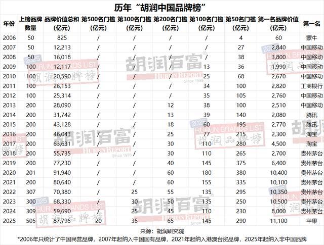 凤凰网科技讯 2月3日,胡润研究院发布《2025胡润中国品牌榜》。这是胡润研究院连续第20次发布该榜单,本届榜单首次纳入进入中国市场并服务于中国消费者的非中国品牌。