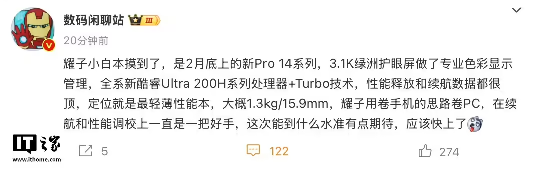 IT之家将于 2 月 26 日 14:30 直播报道荣耀 MagicBook Pro 14 的发布会,敬请期待。