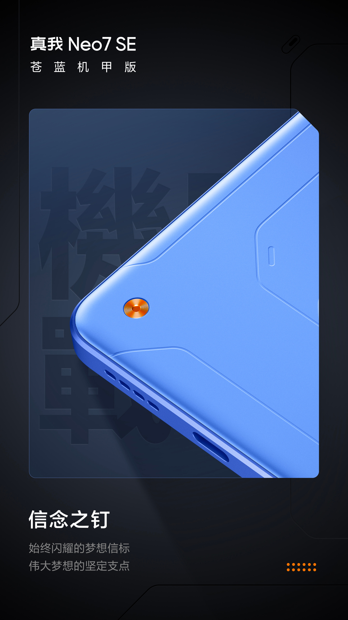 真我手机官方还对新机「苍蓝机甲版」配色的设计进行说明: