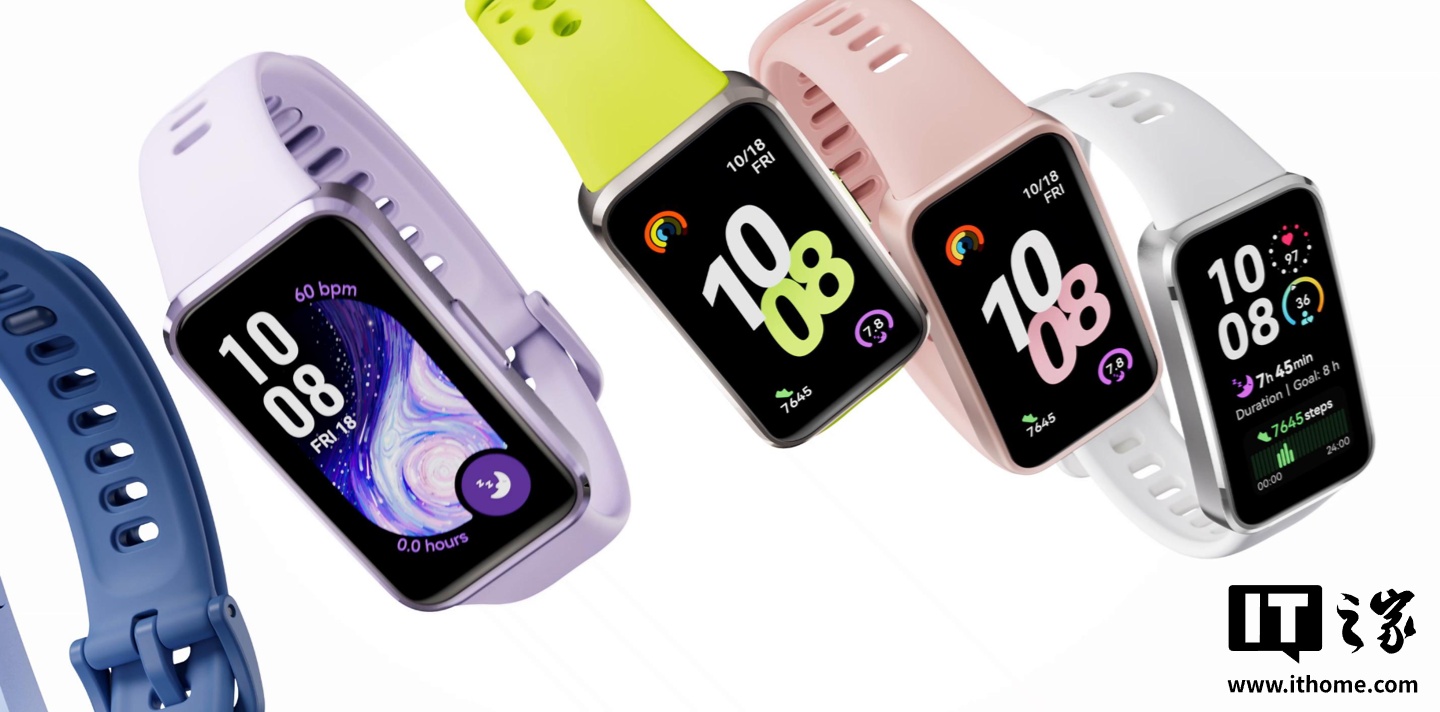 新款手环配备 9 轴 IMU 传感器(加速度计传感器、陀螺仪传感器、磁力计传感器)、光学心率传感器、环境光传感器,支持全屏触摸 + 侧边按钮操控,适配安卓 9(及以上)、iOS 13(及以上)设备配对使用。