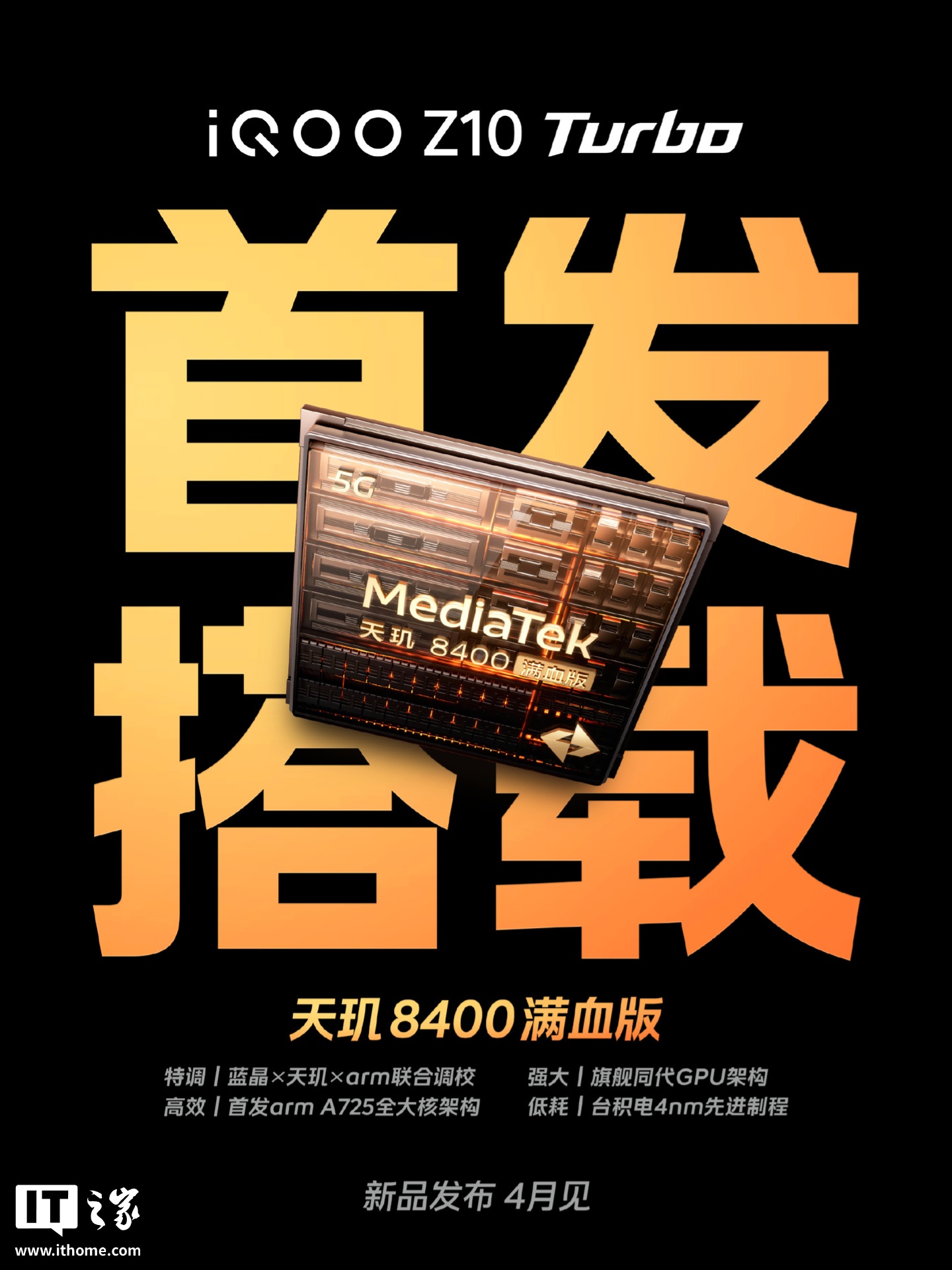 IT之家 4 月 14 日消息,iQOO Z10 Turbo 系列手机已官宣 4 月见。其中标准版全球首发天玑 8400 满血版处理器、Pro 首批搭载骁龙 8s Gen4 处理器。