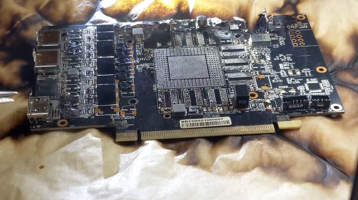 Patryk 在拿到这张显卡后,开始分析起火原因,根据他的分析,起火点始于 12VHPWR 供电接口附近;随后他咨询了这张显卡的主人,他表示他使用这张显卡时,配以“矿机”遗留的无过流保护(OCP)功能电源,当 12VHPWR 供电接口有燃烧迹象时,电源并未触发保护功能切断供电,同时他在“闻到烧焦味”时,才知道电源接口起火,最终导致显卡被烧毁。