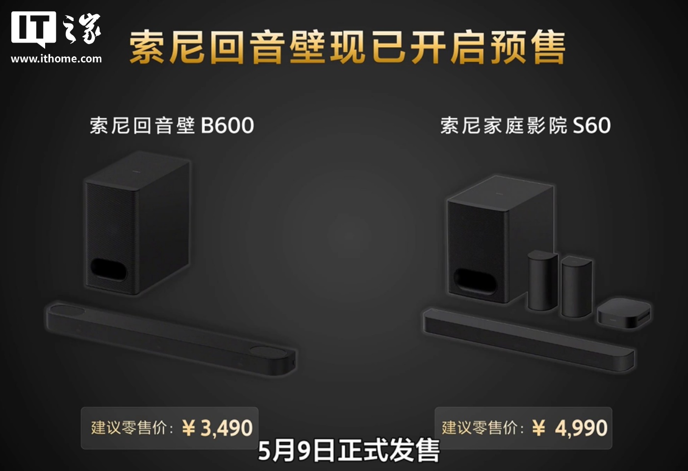 索尼回音壁 B600 售价 3490 元,索尼家庭影院 S60 售价 4990 元,现已开启预售。