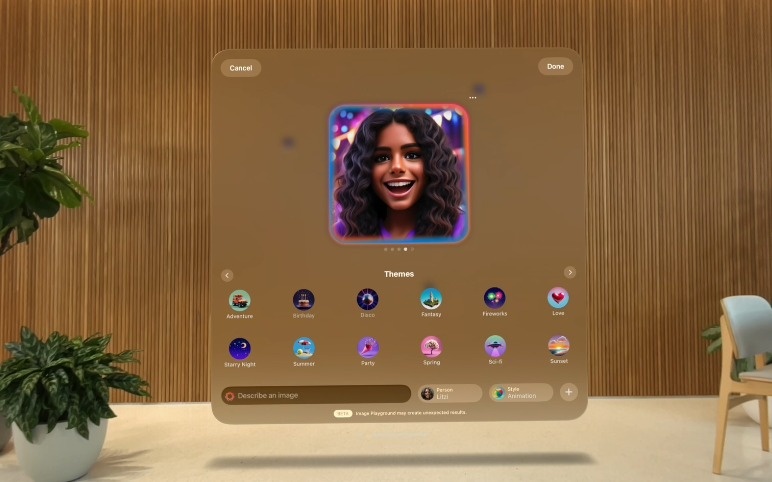 Image Playground:可以生成不同主题、服装、配饰、地点的独特图像,在 iMessage 和无边记等软件中使用。