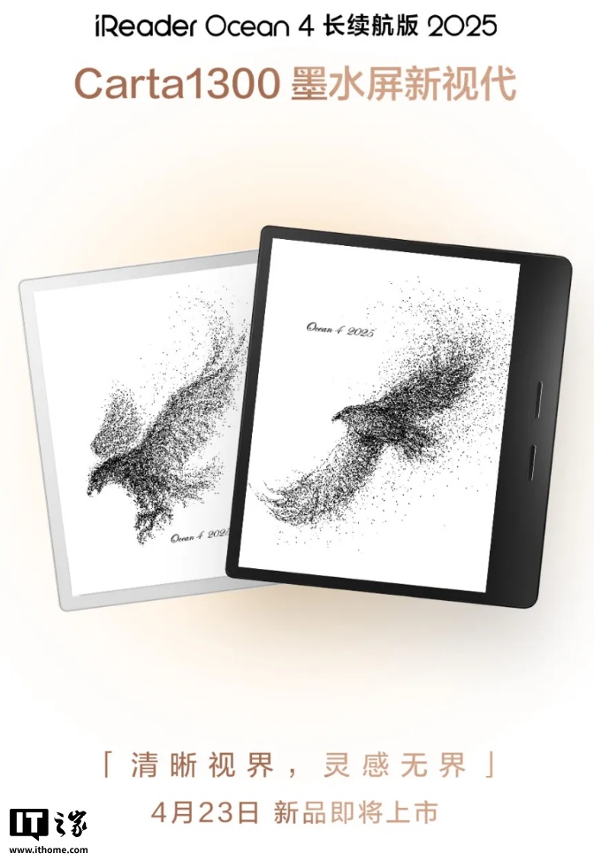 IT之家从官方预告获悉,掌阅还将推 iReader Ocean 4 长续航版 2025 阅读器,搭载 Carta 1300 墨水屏。