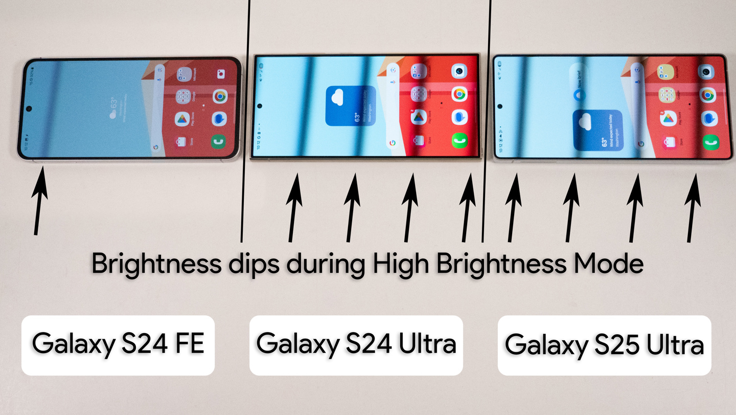 而 DC 调光更接近传统 LCD 或灯泡的调光方式,减少闪烁,更为护眼。Galaxy S24 FE 在 HBM 模式下采用 DC 调光,成为测试中唯一一款具备此特性的三星 AMOLED 设备,凸显其独特优势。