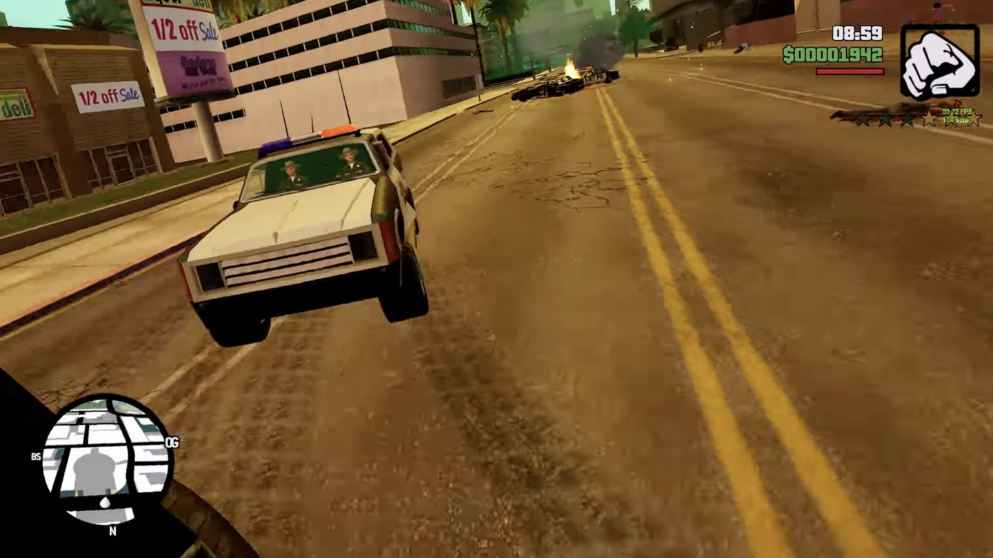 不过目前有开发者 Holydh 为 Steam 版(不支持 R 星启动器 / Epic 版)《GTA:圣安地列斯最终版》推出了第三方 VR Mod,支持完整 6DOF 运动控制,相应 Mod 需要英伟达 RTX2080S 及以上性能的显卡才能流畅运行。
