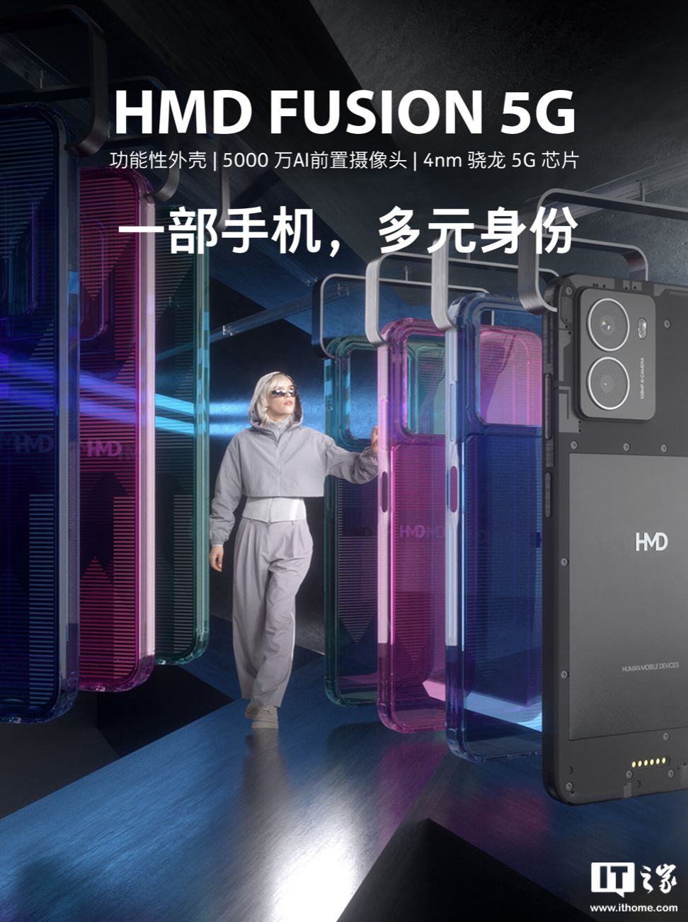 用户通过手机背面的 Smart Pin 可以连接各种外壳配件,实现从无线充电到更坚固的保护,或者是用于更明亮自拍和直播的环形灯等各种扩充功能。用户还可以通过开源的 HMD Fusion 开发工具包,3D 打印出自己的设计。