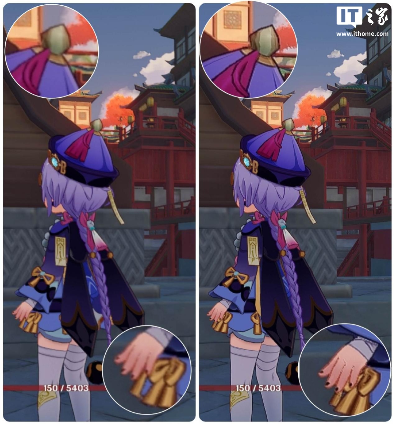 而当开启超级分辨率(1.5K)后,《原神》画面细节显著提升,人物纹理、建筑轮廓的边缘更加清晰锐利,画质呈现细腻逼真。