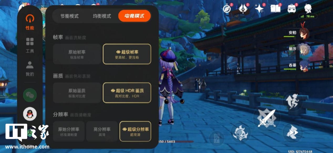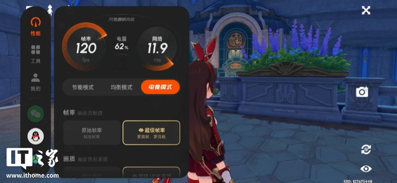 作为一台小屏旗舰,这样的成绩确实令人满意,但一加 13T 带来的惊喜远不止于此。一加 13T 还首发了《原神》原生级 120 帧+1.5K 满血同开 —— 注意,这里的 120 帧是原生级的,支持帧率软件检测。如下图所示,在《原神》游戏中,侧滑呼出游戏助手,找到“超级帧率”即可开启。