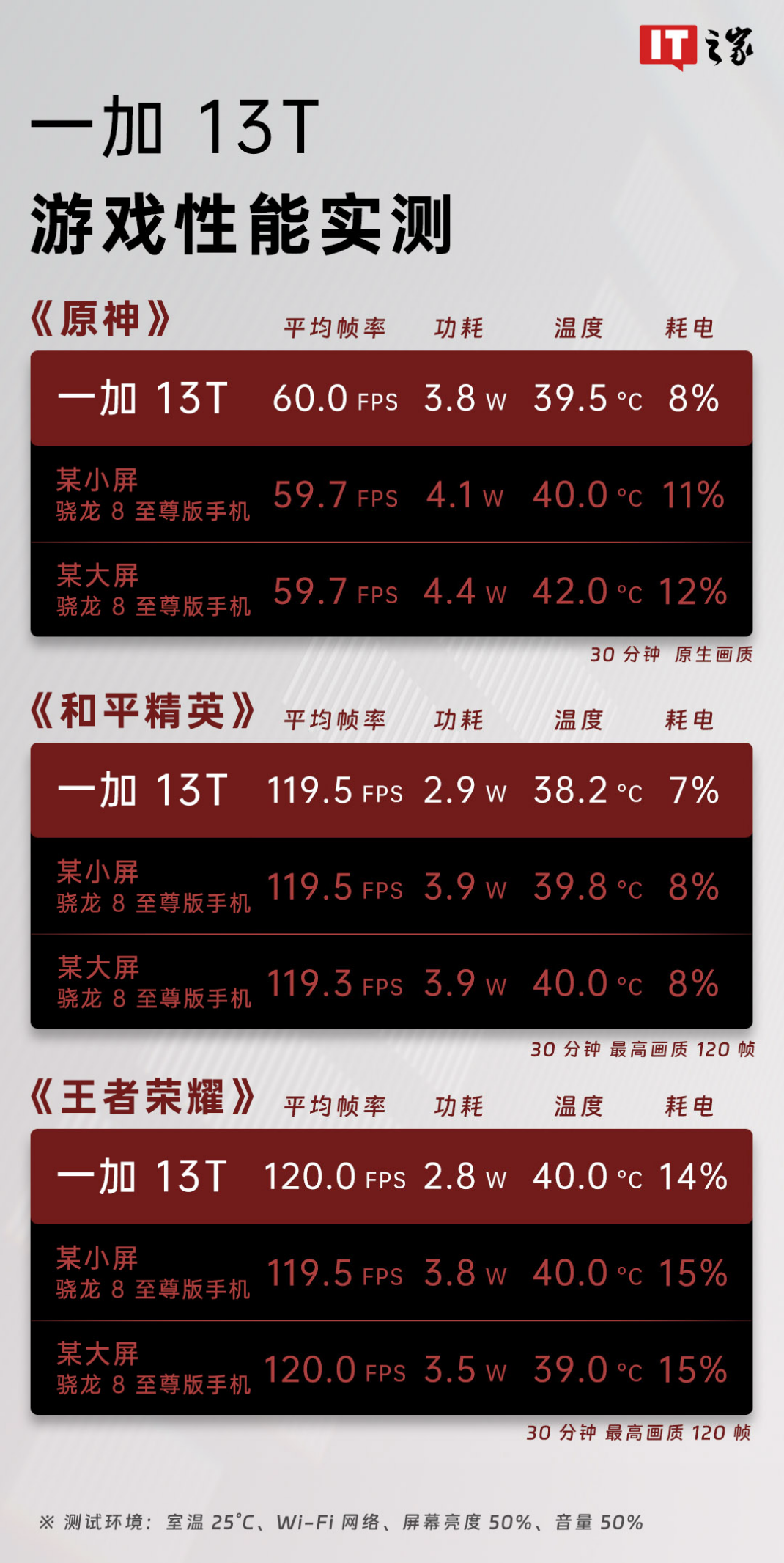 从实测数据来看,搭载 6260mAh 冰川电池的一加 13T,即使在中度使用场景下,也能轻松实现 8 小时亮屏续航。由此看来,号称「小屏大魔王」的一加 13T,凭借独家 6260mAh 高性能冰川电池,在紧凑机身内实现续航能力的突破。从IT之家上述测试来看,续航表现不仅远超同规格小屏机型,更超越不少主流大屏旗舰。