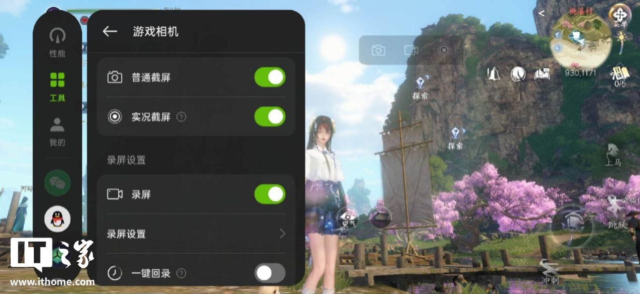如上图,在侧边栏游戏助手中开启该功能后,录屏按钮将半隐藏式常驻于游戏画面,可自由拖动位置,点击即可轻松录屏或拍摄 3 秒实况照片。