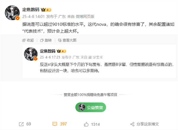 结合此前爆料,华为nova 14系列将带来标准版、Pro、Ultra三款机型,其中标准版或将搭载麒麟8系列新芯片,但性能表现将超过麒麟9010的水平。