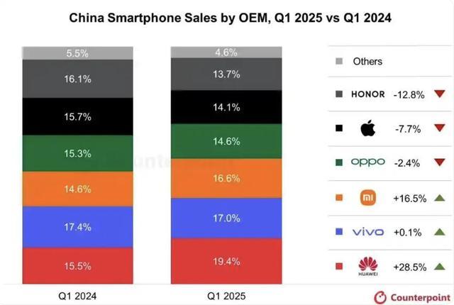 谁能想到,2025年才过去一个季度,中国手机市场格局就迎来了翻天覆地的变化。