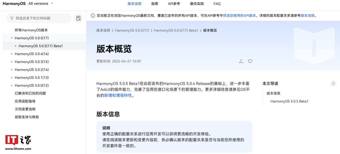 据今日早些时候报道,华为开发者官网今日公布了鸿蒙 HarmonyOS 5.0.5 (17) Beta1 新增和增强特性,新版本是 API 17 的首个版本。官方称 5.0.5 (17) Beta1 在此前发布的 HarmonyOS 5.0.4 Release 的基础上,进一步丰富了 ArkUI 的组件能力,完善了应用在窗口化场景下的管理能力。