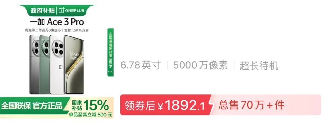 同期还有火了好一阵子的一加 Ace 5 ,结合国补现在 1666 元价格,已经算是跌到冰点了~