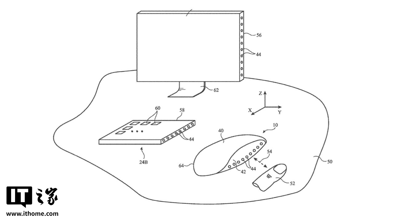 2009 年,苹果首次推出妙控鼠标时,其多点触控手势功能让人眼前一亮。此后,该产品虽有重新设计,但关于鼠标新增手势功能的传闻此前并未出现。然而,这项新专利表明,苹果正在探索一种全新的交互方式,即通过鼠标侧面的传感器阵列,捕捉用户手指在鼠标侧边区域的位置信息,从而实现三维手势识别。