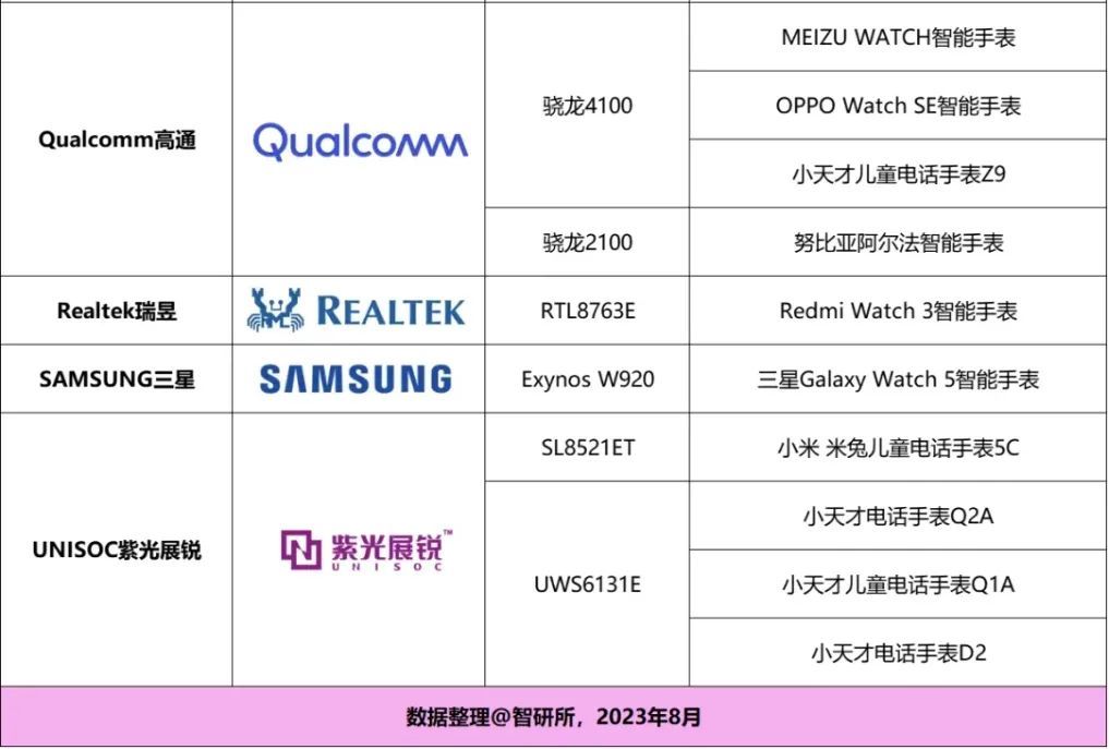 主控芯片无疑是核心,根据智研所2023年发布的《16个品牌旗下25款智能手表拆解汇总》,智能手表主控芯片包括炬芯科技、Ambiq、恒玄、Dialog、富芮坤、海思、高通、瑞昱、三星、紫光展锐10大芯片厂商旗下16款方案,获得15个品牌旗下23款产品采用。其中,儿童智能手表主控芯片厂商主要有紫光展锐和高通。