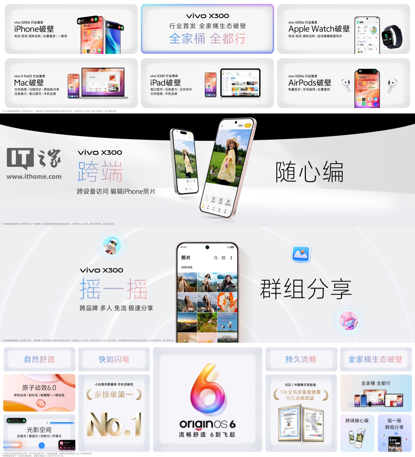 IT之家 10 月 13 日消息,vivo X300 系列新品发布会正在进行中,官方在发布会中亮相了行业首发的“全家桶生态破壁”方案,可互通“苹果全家桶”设备。