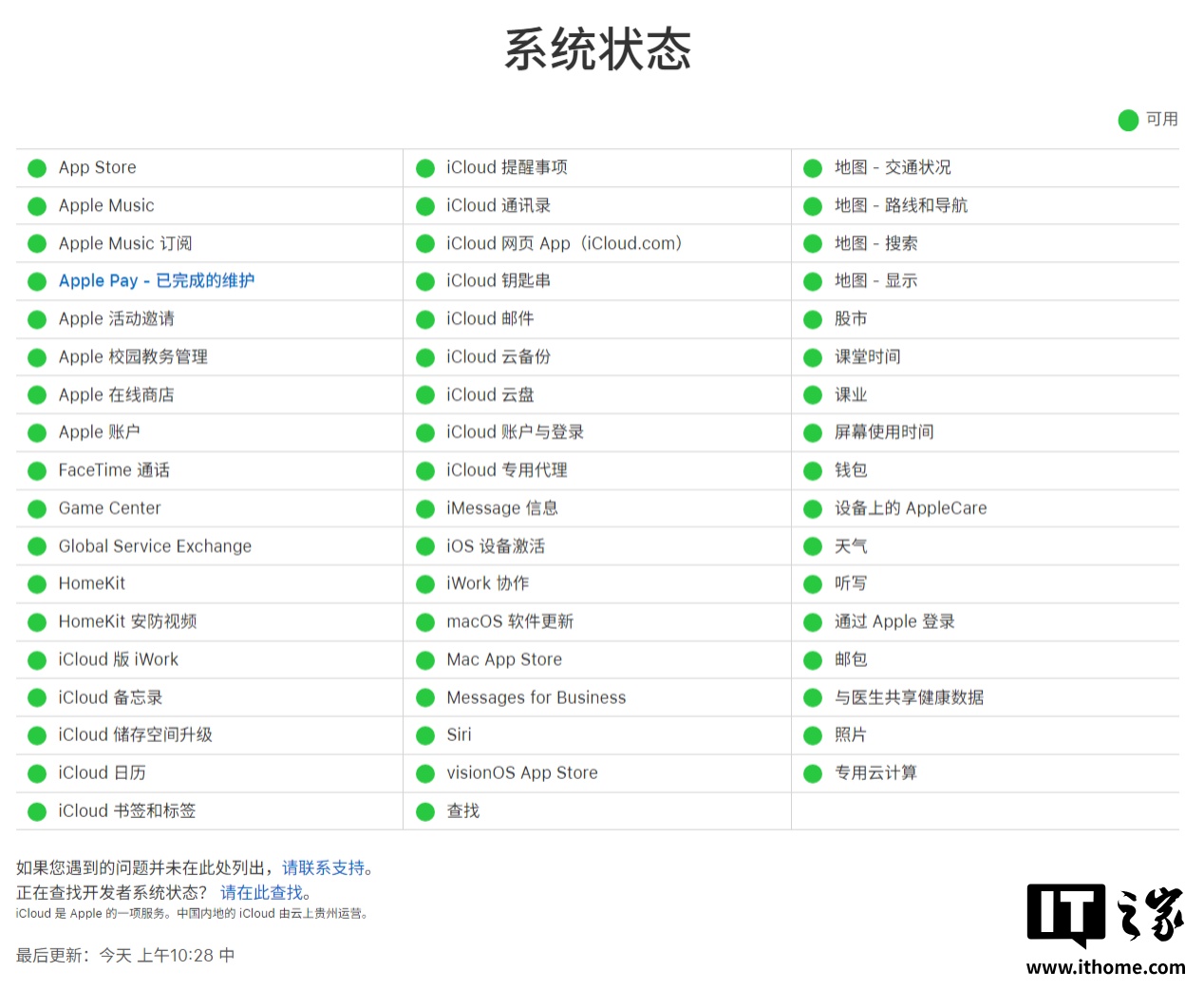 IT之家查询苹果系统状态页面,目前所有服务均显示可用。