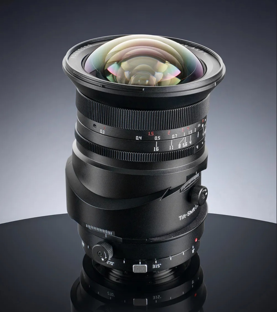 支持索尼E/尼康Z/佳能RF/松莱L/富士GF五大厂商,基本完成全覆盖。11组17片结构,10片光圈叶片,最近对焦距离0.3米,支持有级“360度旋转”,适配Tilt-Shift移轴机构,最高支持±8mm的平移量,修正透视变形。