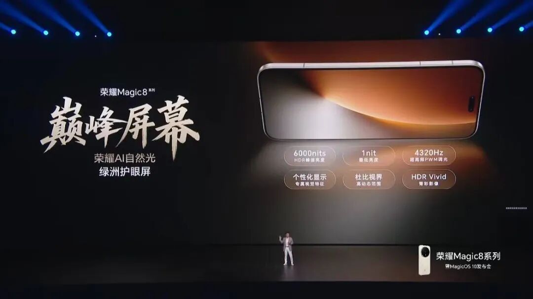 10月15日,荣耀举行新品发布会,全系旗舰产品亮相。维信诺供货Magic8/Magic8 Pro手机、智能手表5 Pro,以更通透、更护眼的显示屏,助力荣耀“开新局 见未来”。