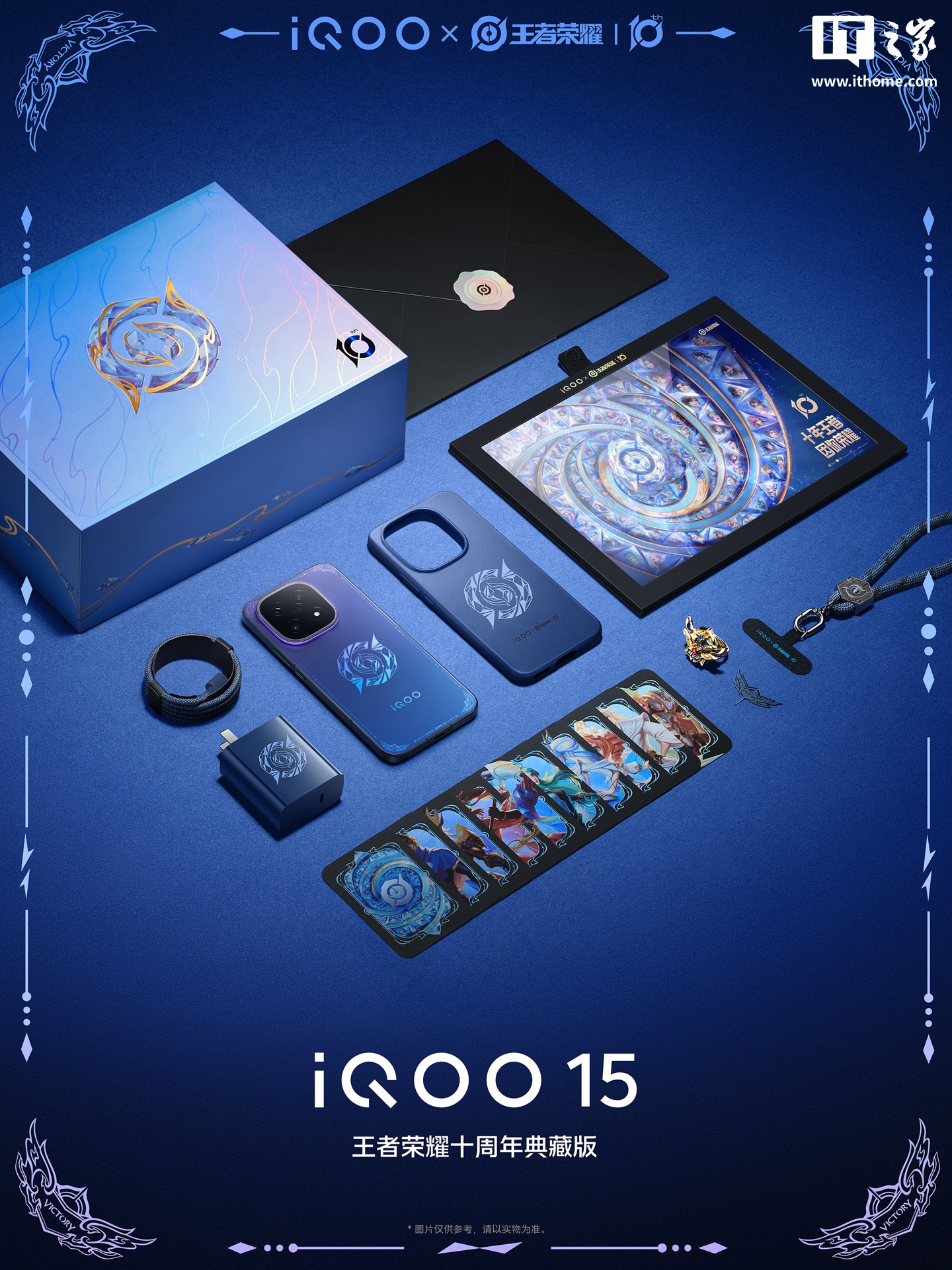 IT之家 10 月 18 日消息,iQOO 官方昨天发布微博,亮相 iQOO 15 手机王者荣耀十周年典藏版,联合王者荣耀团队定制外观、UI 等元素,将在 10 月 20 日晚 19 点限量发售。